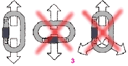 Карабин должен быть правильно расположен. Т.е. ни какие внешние предметы не должны как бы “поддерживать” карабин, т.к. в этом случае он начинает “работать на излом”, что снижает его нагрузочные способности.