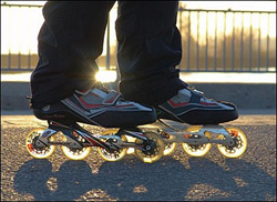 6. Рама сильно стирается в местах контакта с асфальтом (power-stop*ы, слайды, неудачные прыжки, когда колесо соскакивает с поверхности и грань бьет по раме). Лечение - кататься пока не сломается, а потом выкинуть и купить новые роллы.