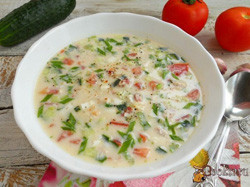 Добавить порезанные небольшими кубиками помидоры и огурцы.