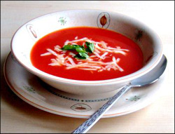 Диетический томатный суп включает в свой состав лишь низкокалорийные ингредиенты – главным компонентом этого блюда, безусловно, являются помидоры.