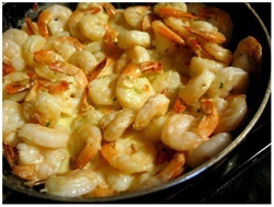 Перед подачей креветки под сливочно-чесночным соусом посыпать рубленой петрушкой.