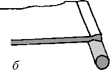 Фиксация края юбки: а — эластичный шнур, вставленный в край юбки; б — шнур, пришитый непосредственно к краю юбки; в — резиновая лента, приклеенная к краю юбки.