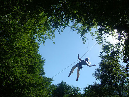 В последний день инструктор решил обкатать на наших несчастных, изморённых телах курс молодого альпиниста. Нашёл толстый бук, обвесил его верёвками и гонял по нему как мартышек с утра до вечера.