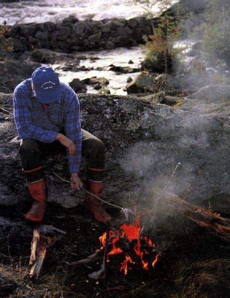 Рыбу, весящую больше 1 килограмма следует разрезать вдоль брюшка и развернуть так, чтобы придать ей плоскую форму, а затем насадить ее на подготовленную рогатку. Нельзя допускать, чтобы огонь (костер) был слишком слабым.