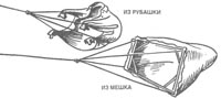 Если вы намерены оставаться поблизости от места кораблекрушения или аварии самолета или вам необходимо выдерживать направление, используйте морской якорь (рис. 36) или сделайте водный тормоз из чехла плотика или водоотливного ведерка. Следите за тем, чтобы фал от якоря не протирал стенки надувного плота. Во время шторма якорь позволит выдерживать курс и диаметральную плоскость плота по ветру.